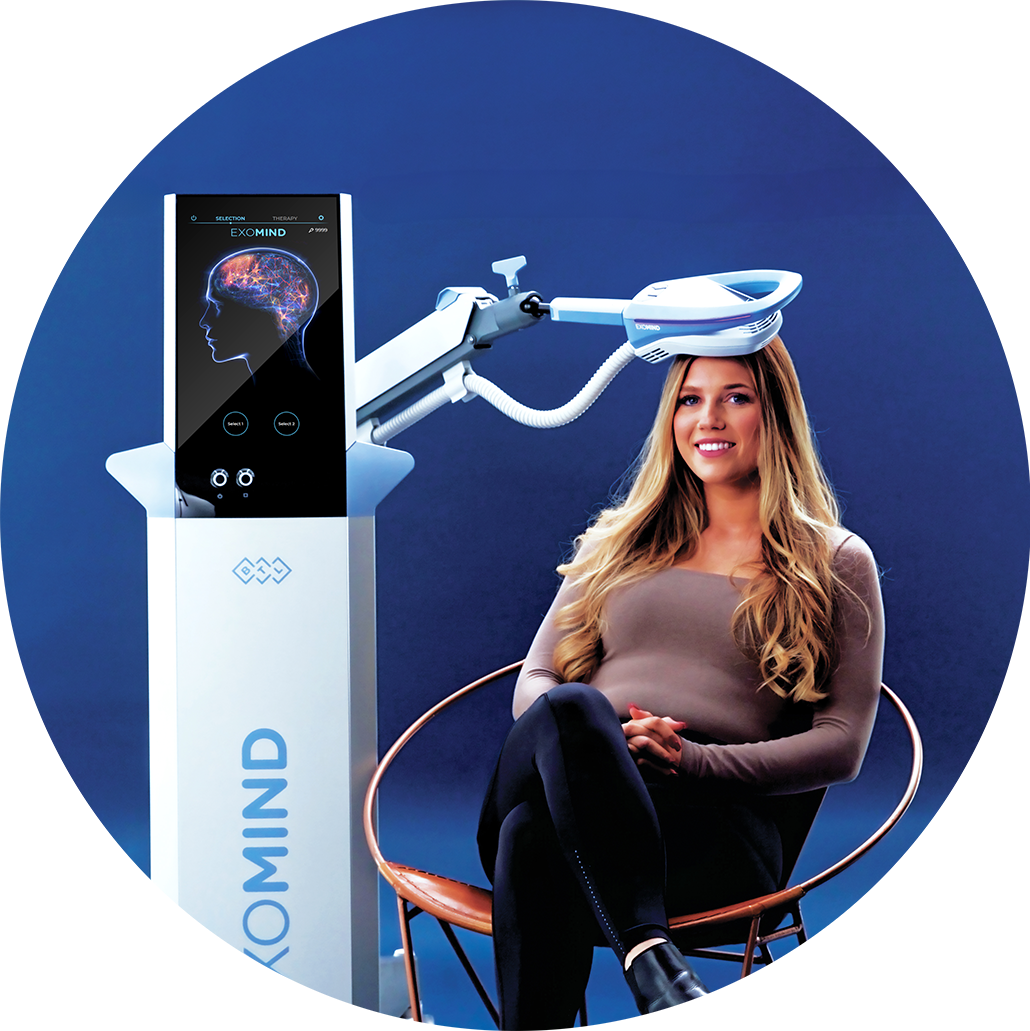 EXOMIND® is a next-generation, non-invasive brain stimulation treatment designed to optimize mental wellness and cognitive function. Using advanced Transcranial Magnetic Stimulation (TMS) technology, EXOMIND targets key areas of the brain responsible for mood regulation, focus, and decision-making.